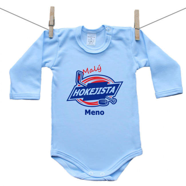 Modré body s dlhým rukávom Malý hokejista s menom