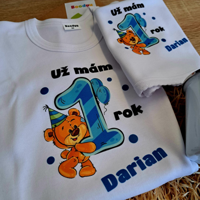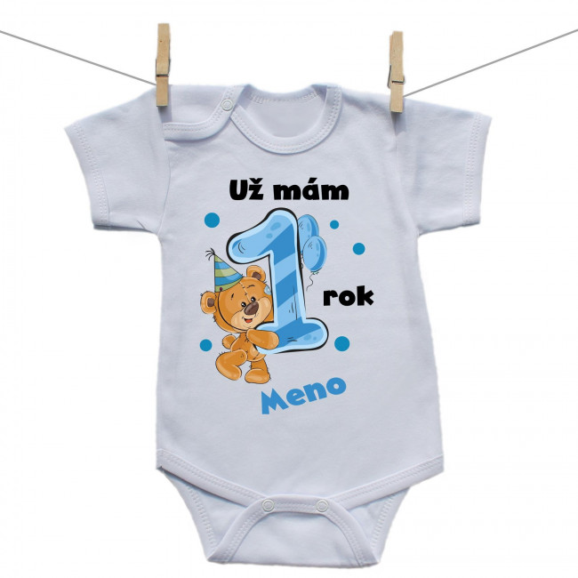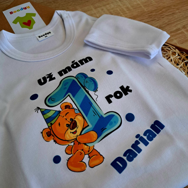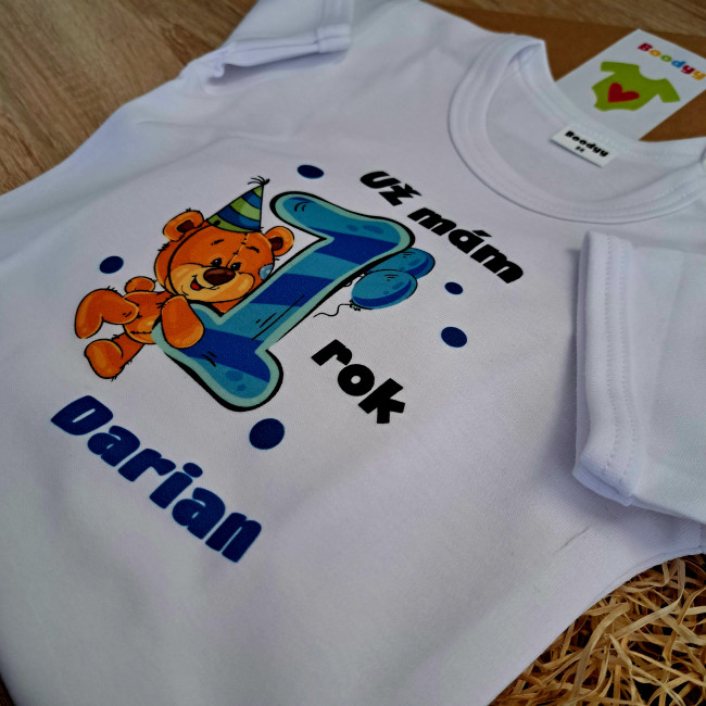 Body s krátkym rukávom Už mám 1 rok s Medvedíkom a menom dieťatka Chlapec