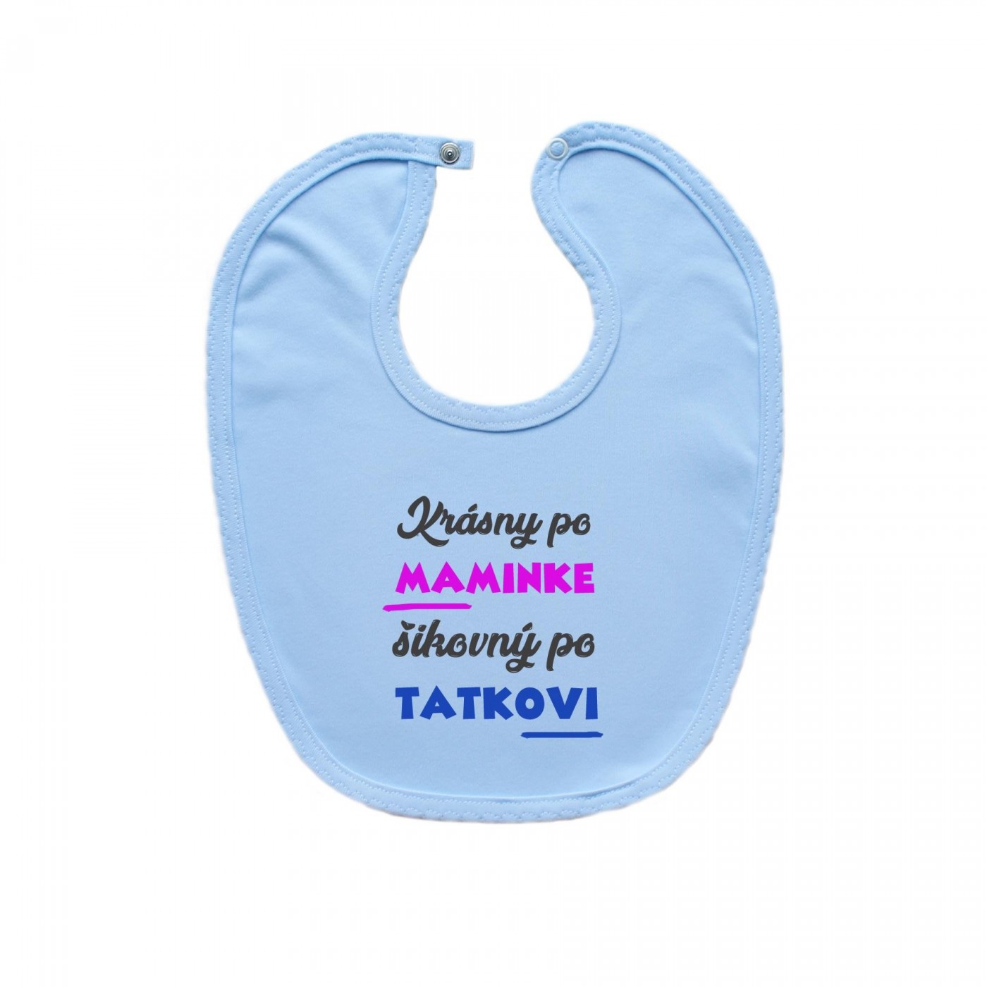 Modrý podbradník na zapínanie Krásny po maminke, šikovný po tatkovi