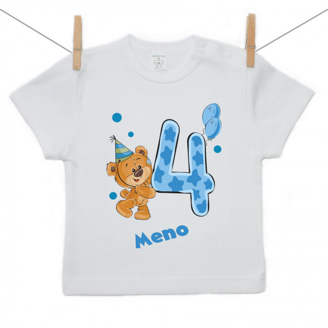 Tričko s krátkym rukávom Mám 4 roky s medvedíkom pre chlapca