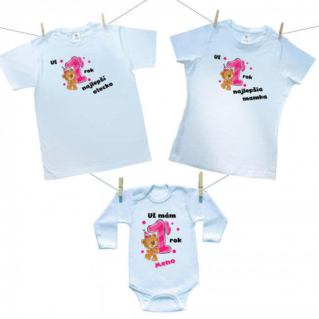 Rodinná sada (body s dlhým rukávom) Už 1 rok najlepší rodičia dievčatka s menom dieťatka