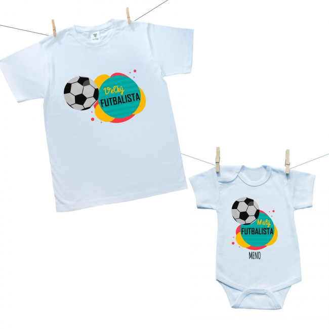 Rodinná sada (body s krátkym rukávom) Malý a veľký futbalista s menom dieťatka